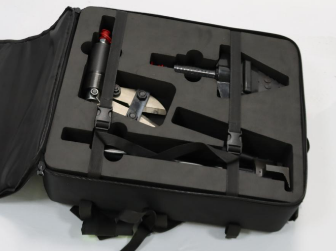 背負(fù)式電動液壓工具組以電動泵為動力,重量輕,作用力大,效率高。單手操作模式,實(shí)現(xiàn)在狹小空間里更加靈活的使用工具;電動液壓泵具有二級壓力輸出,根據(jù)外接負(fù)載的變換自動轉(zhuǎn)變壓力;電動液壓泵作為液壓動力源與組件中其他工具配套進(jìn)行破拆作業(yè);撬棍可單獨(dú)進(jìn)行起釘及撬拆工作;邊緣抬升器底腳與油缸的螺旋槽可以增大開門距離,需要時可擰出;邊緣抬升器的分離槽有防滑功能,可分離易打滑的框架結(jié)構(gòu);微型剪切器尺寸小、重量輕,剪切力大,能剪斷直徑18mm的圓鋼;套組工具接口均為單管平接口,平面密封,具備鎖止功能和防塵裝置;套組采用線控方式操作,超大控制按鈕,操控方便、簡單;具有定位功能,更適合精確操作。